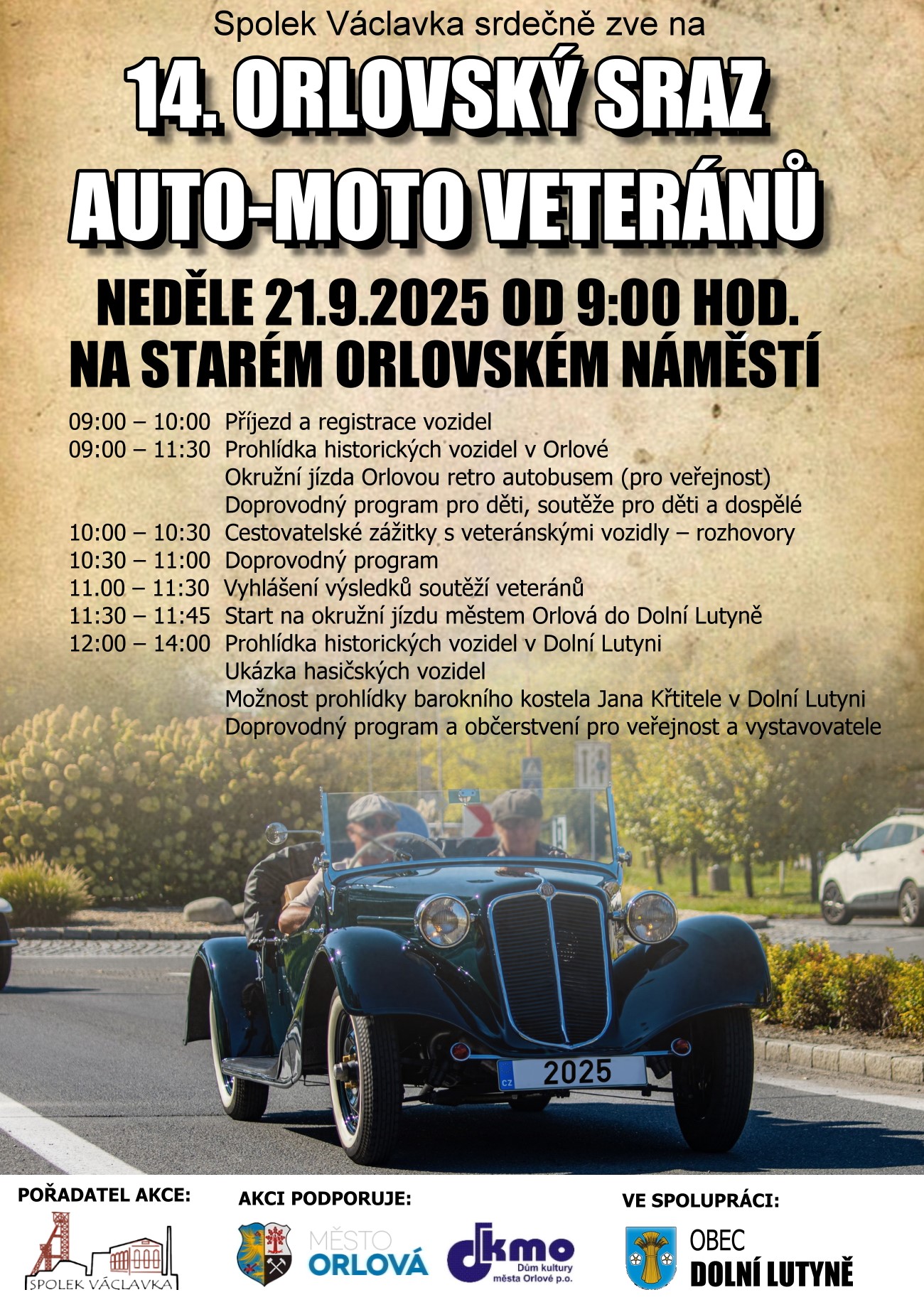 Srdečně zveme na sraz auto-moto veteránů v Orlové. Letošní ročník jsme opět propojili s Dolní Lutyní a připravili jsme pro vás parádní podívanou i program.